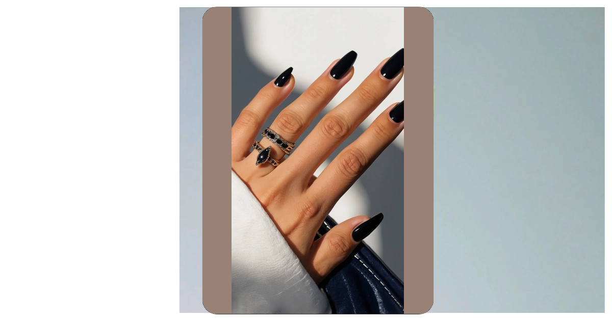 This whole hand is basically a mini fashion show, from the glossy black nails to that stunning ring that seems to be winking right at the camera. It’s not just about the awesome contrast; it’s about making a statement without even trying too hard. These black nails aren’t just dark; they’re bold, playful, and totally owning their unique twist. It proves that sometimes the coolest looks come from shaking things up a little and letting one nail be the star of its own show, all while keeping that cool, dark edge.