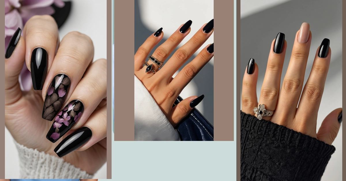 This whole hand is basically a mini fashion show, from the glossy black nails to that stunning ring that seems to be winking right at the camera. It’s not just about the awesome contrast; it’s about making a statement without even trying too hard. These black nails aren’t just dark; they’re bold, playful, and totally owning their unique twist. It proves that sometimes the coolest looks come from shaking things up a little and letting one nail be the star of its own show, all while keeping that cool, dark edge.